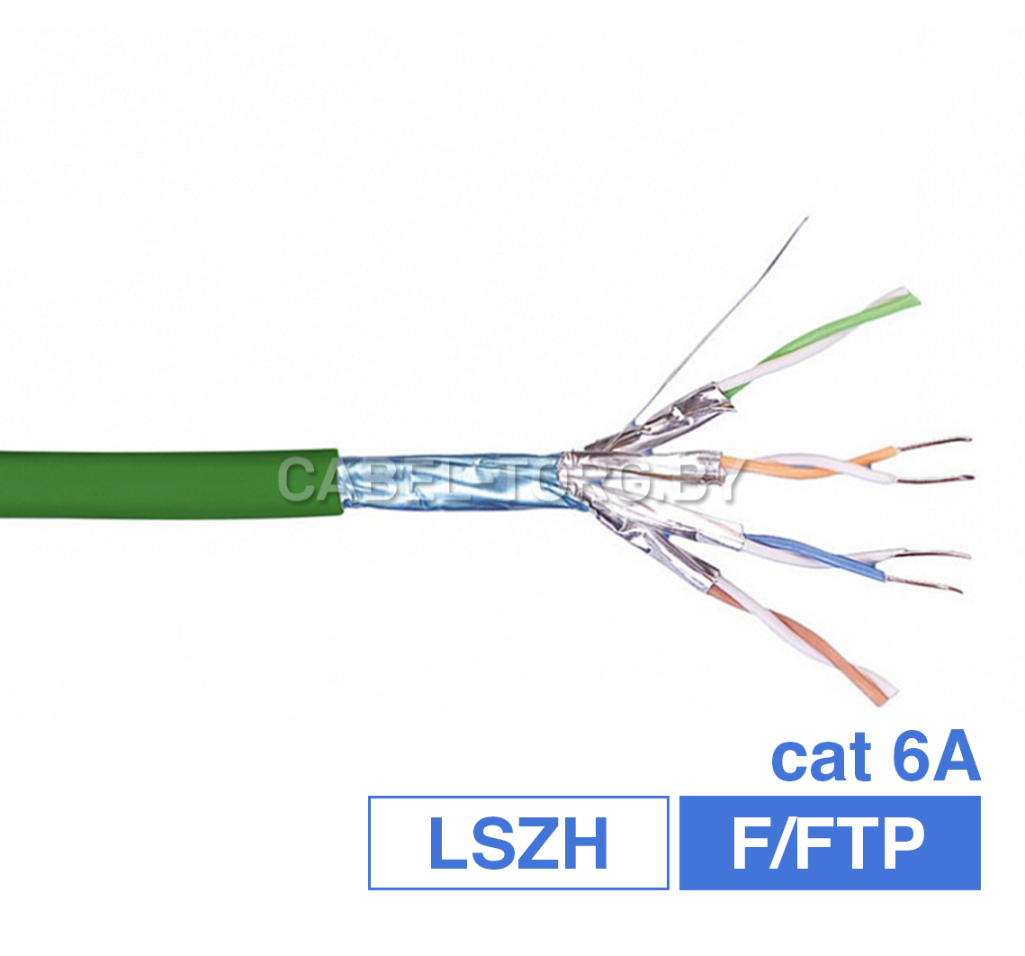 Витая пара F/FTP cat 6A 4x2x23 AWG LSOH/LSZH Green (RAL 6018)(500m) зелёная оболочка